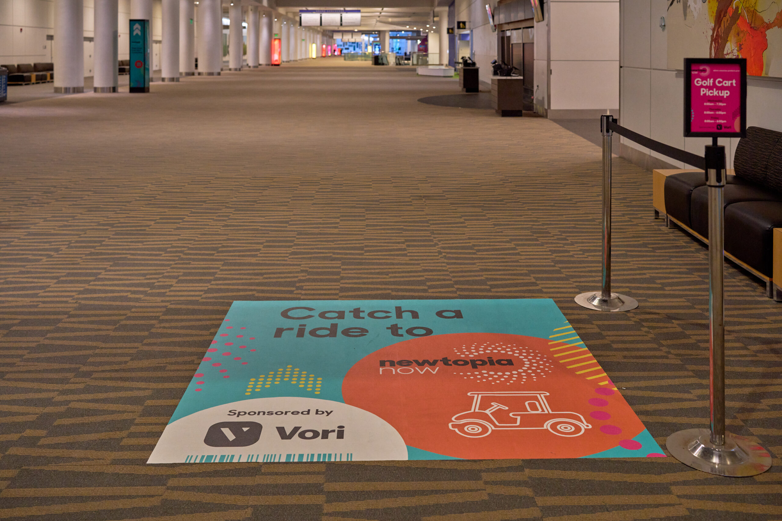 Enhance your presence at Newtopia Now and draw attendees to your booth with floor graphics in the main concourse heading towards the show floor!Content:
