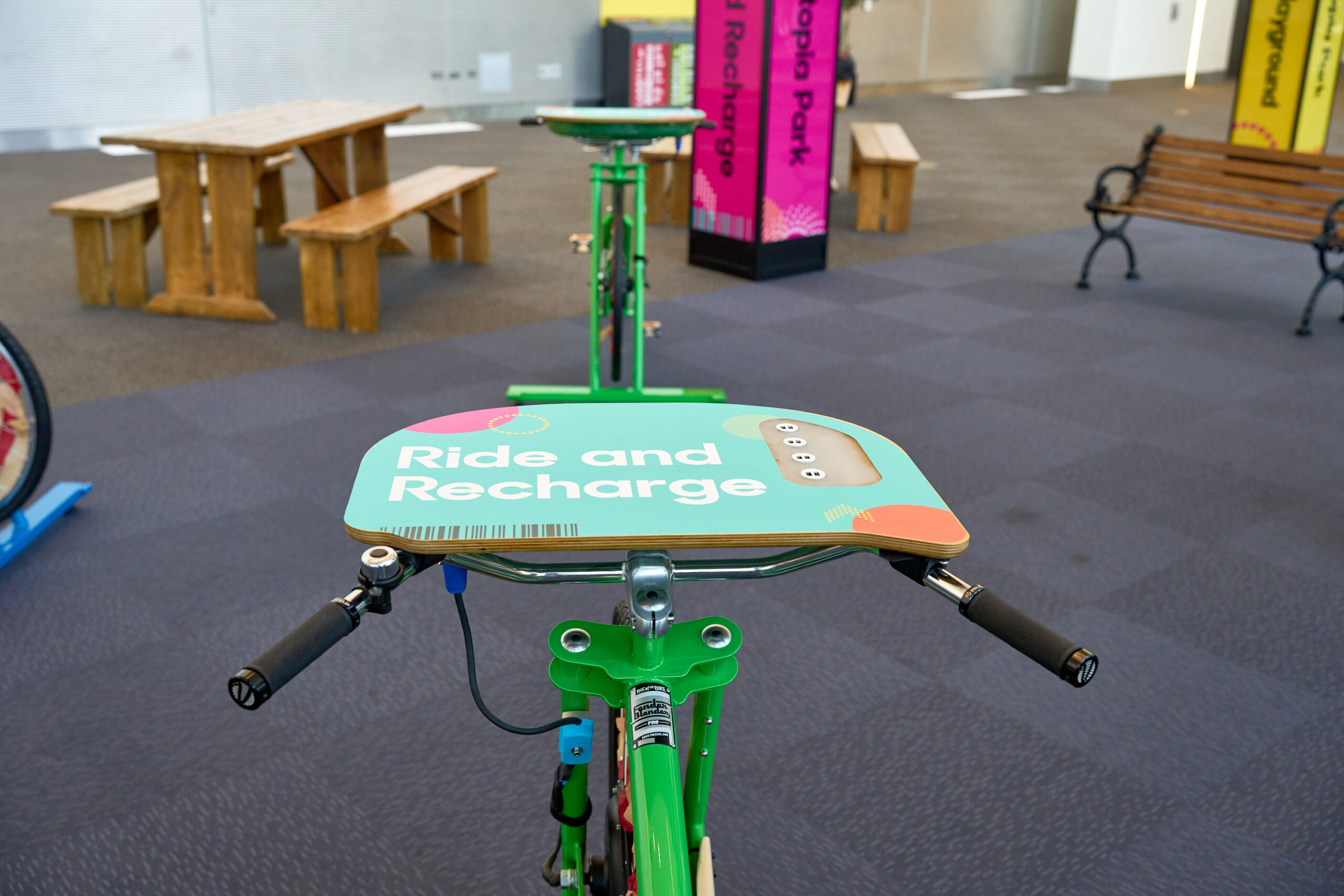 - 1 Charging Bike to be branded with custom sponsor graphics of the desk.